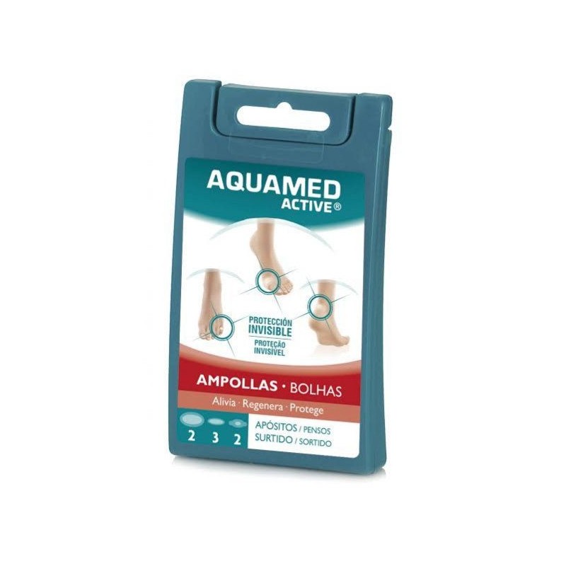AQUAMED ACTIVE APÓSITOS AMPOLLAS ALIVIA INMEDIATAEMENTE EL DOLOR, MINIMIZA LAS CICATRICES Y CONTRIBUYE A UNA RÁPIDA CURACIÓN DE LA AMPOLLA.- ÓPTIMA ADHESIÓN DE LARGA DURACIÓN.- FÁCIL APLICACIÓN, NO NECESITA CALENTAR PREVIAMENTE.- PROTEGE DE LA SUCIEDAD, LAS BACTERIAS Y EL AGUA.- TRANSPARENTE Y DISCRETO.