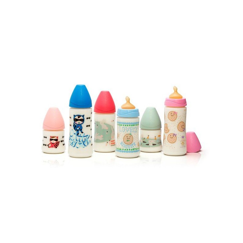 SU GRAN DIÁMETRO FACILITA A LOS PADRES LA PREPARACIÓN Y LA LIMPIEZA DE LA TOMA, ADEMÁS DE POTENCIAR SU ESTABILIDAD.LA FORMA ERGONÓMICA DE LA BOTELLA PERMITE UNA MAYOR SUJECIÓN MÁS CÓMODA Y SEGURA.CON TETINA ANATÓMICA, QUE IMITA LA FORMA DEL PEZÓN MATERNO DURANTE LA SUCCIÓN, Y VÁLVULAS ANTICÓLICO, QUE EVITAN LAS MOLESTIAS, COMO EL HIPO Y LOS CÓLICOS GASEOSOS.TETINA AVALADA POR LA SOCIEDAD ESPAÑOLA DE ODONTOPEDIATRÍA, DISPONIBLE EN DOS TALLAS: TALLA 1, DISEÑADA PARA BEBÉS DE 0 A 6 MESES, Y TALLA 2, PENSADA PARA BEBÉS DE MÁS DE 6 MESES.TAMBIÉN, PUEDE ENCONTRARSE CON DIFERENTES FLUJOS: FLUJO LENTO (S), PARA LOS PRIMEROS DÍAS, FLUJO MEDIO (M), PARA LA LECHE, ZUMOS Y PAPILLAS MUY LÍQUIDAS, Y FLUJO DENSO (L), PARA PAPILLAS Y OTROS ALIMENTOS CONSISTENTES.DISPONIBLE EN SEIS ACTUALES DISEÑOS SIEMPRE A JUEGO CON CHUPETES Y BROCHES PINZA DE LA COLECCIÓN.