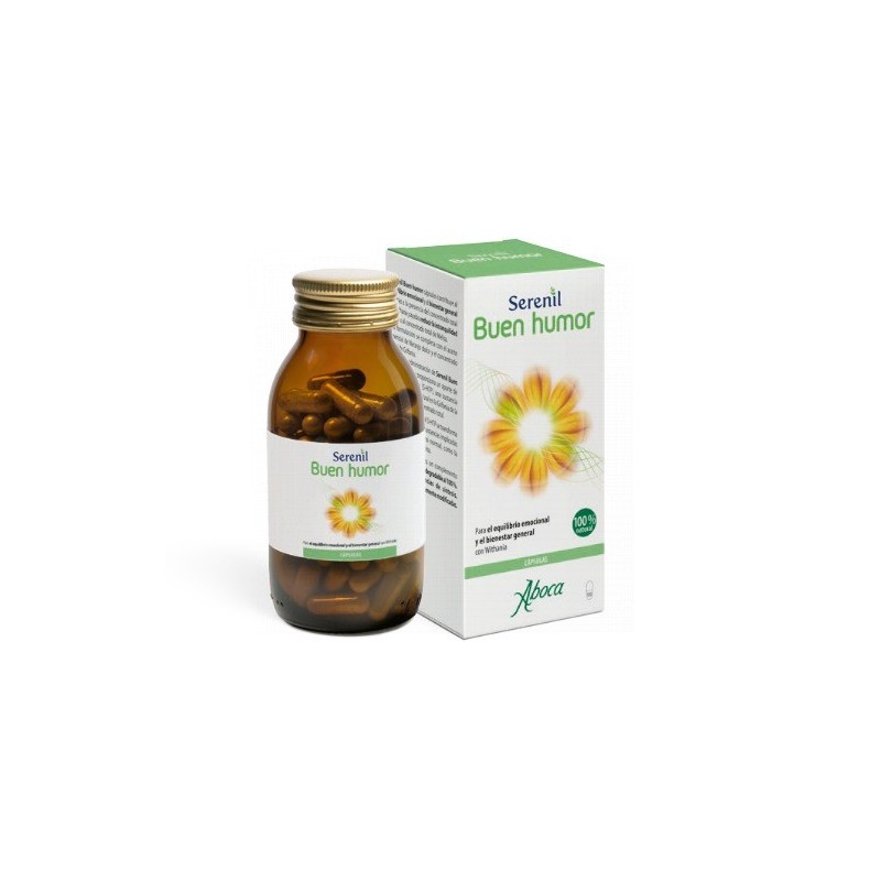SERENIL BUEN HUMOR CÁPSULAS CONTRIBUYE AL EQUILIBRIO EMOCIONAL Y AL BIENESTAR GENERAL GRACIAS A LA PRESENCIA DEL CONCENTRADO TOTAL DE WITHANIA Y AYUDA A REDUCIR LA INTRANQUILIDAD GRACIAS AL CONCENTRADO TOTAL DE MELISA.SU FORMULACIÓN SE COMPLETA CON EL ACEITE ESENCIAL DE NARANJO DULCE Y EL CONCENTRADO TOTAL DE GRIFONIA. ADEMÁS, LA ADMINISTRACIÓN DE SERENIL BUEN HUMOR CÁPSULAS PROPORCIONA UN APORTE DE 5-HIDROXITRIPTÓFANO (5-HTP), UNA SUSTANCIA PRESENTE DE FORMA NATURAL EN LA GRIFONIA DE LA QUE SE OBTIENE EL CONCENTRADO TOTAL.DENTRO DEL ORGANISMO, EL 5-HTP SE TRANSFORMA NATURALMENTE EN OTRAS SUSTANCIAS IMPLICADAS EN EL ESTADO DE ÁNIMO NORMAL, COMO LA SEROTONINA Y LA MELATONINA.SERENIL BUEN HUMOR ES UN COMPLEMENTO ALIMENTICIO NATURAL Y BIODEGRADABLE AL 100 %. NO CONTIENE SUSTANCIAS DE SÍNTESIS, SEMISÍNTESIS O GENÉTICAMENTE MODIFICADAS.MODO DE EMPLEOSE ACONSEJA TOMAR 2 CÁPSULAS 2 VECES AL DÍA, PREFERIBLEMENTE POR LA MAÑANA Y POR LA NOCHE.ADVERTENCIASNO SUPERAR LAS DOSIS RECOMENDADAS. LOS COMPLEMENTOS ALIMENTICIOS NO PUEDEN CONSIDERARSE UN SUSTITUTO DE UNA DIETA VARIADA Y EQUILIBRADA Y DEBEN SER UTILIZADOS EN EL ÁMBITO DE UN ESTILO DE VIDA SANO. MANTENER EL PRODUCTO FUERA DEL ALCANCE DE LOS NIÑOS MÁS PEQUEÑOS.