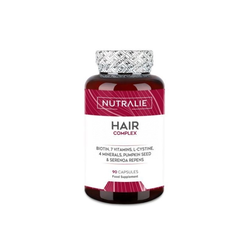 Hair Complex está formulado a base de L-Cistina, Biotina, Selenio, Zinc, Cobre, Semillas de Calabaza y Serenoa Serrulata. Una fórmula compleja con una alta combinación de vitaminas, minerales y extractos naturales que ha sido diseñada para aportar los nutrientes necesarios para fortalecer el cabello dándole un mayor volumen y brillo, así como facilitando el crecimiento de un cabello sano y fuerte.