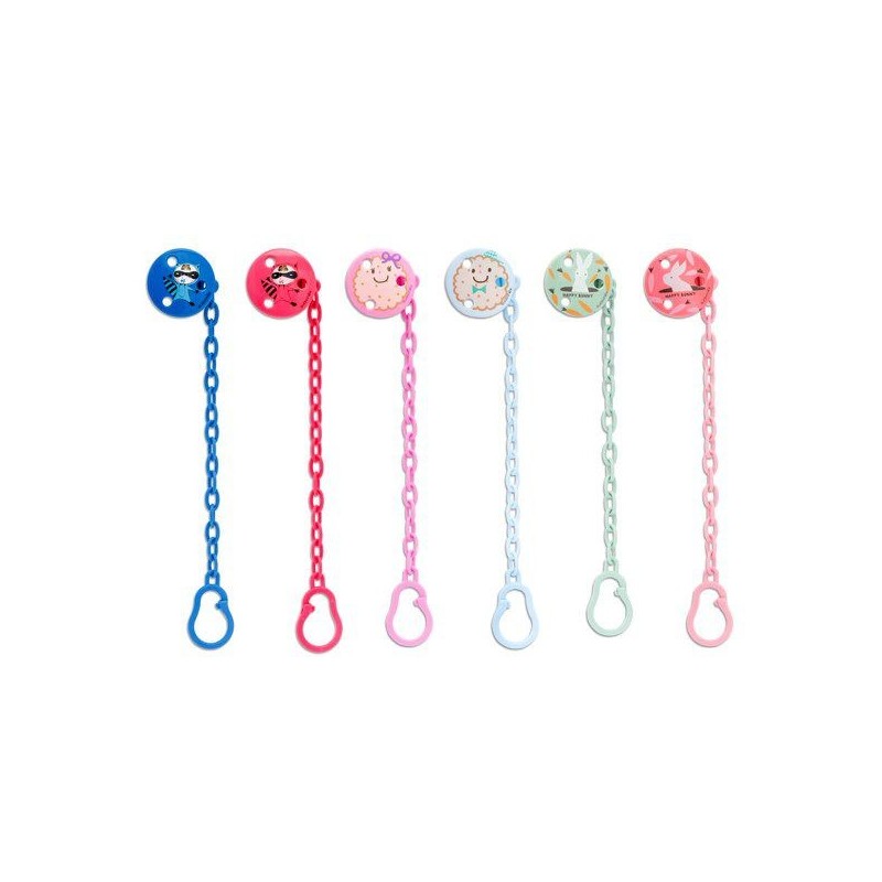 PERMITE SUJETAR EL CHUPETE A LA ROPA DEL BEBÉ, EVITANDO QUE CAIGA AL SUELO Y SE ENSUCIE O SE PIERDA.LA PINZA, QUE SE SUJETA A LA ROPA, LLEVA UNIDA UNA ARGOLLA EN LA QUE INTRODUCIR EL CHUPETE.MUY CÓMODO Y PRÁCTICO.DISPONIBLE EN 6 DIVERTIDOS DISEÑOS A JUEGO CON LOS BIBERONES Y CHUPETES DE LA COLECCIÓN.