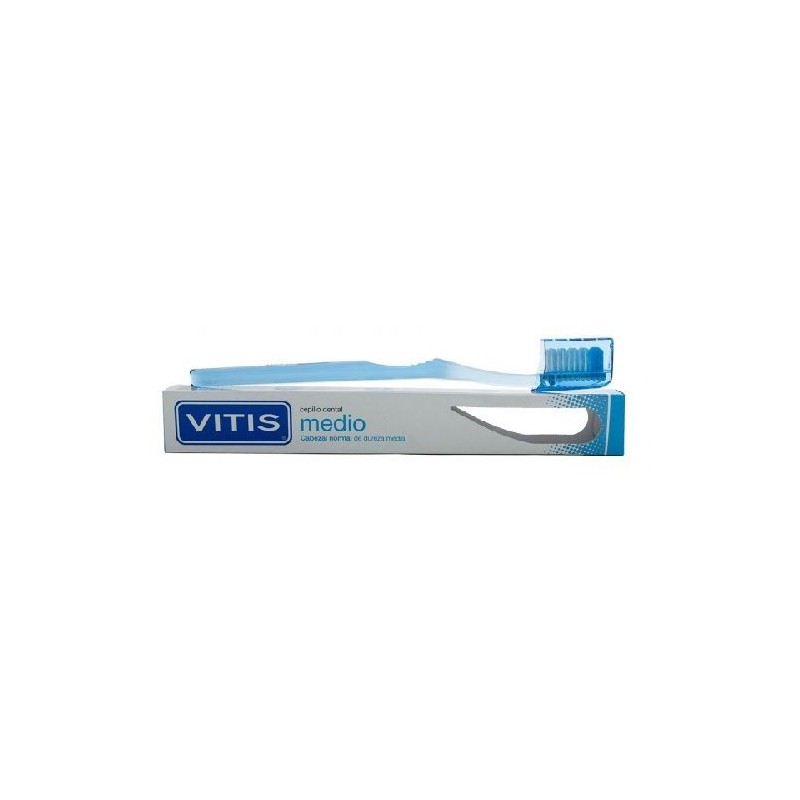 VITIS MEDIO ES UN CEPILLO CON FILAMENTOS DE DUREZA MEDIA DISEÑADO ESPECIALMENTE PARA ELIMINAR EFICAZMENTE EL BIOFILM ORAL (PLACA BACTERIANA).VITIS MEDIO ES UN CEPILLO DE USO DIARIO CON UN CABEZAL DE FORMA DIAMANTADA QUE PERMITE LLEGAR A LAS ZONAS DE DIFÍCIL ACCESO DE LA CAVIDAD BUCAL. SUS FILAMENTOS DE DUREZA MEDIA Y CON PERFIL ONDULADO, ACCEDEN A LOS ESPACIOS INTERDENTALES, A LA VEZ QUE FACILITAN LA LIMPIEZA EN EL CONTORNO DE LAS ENCÍAS.