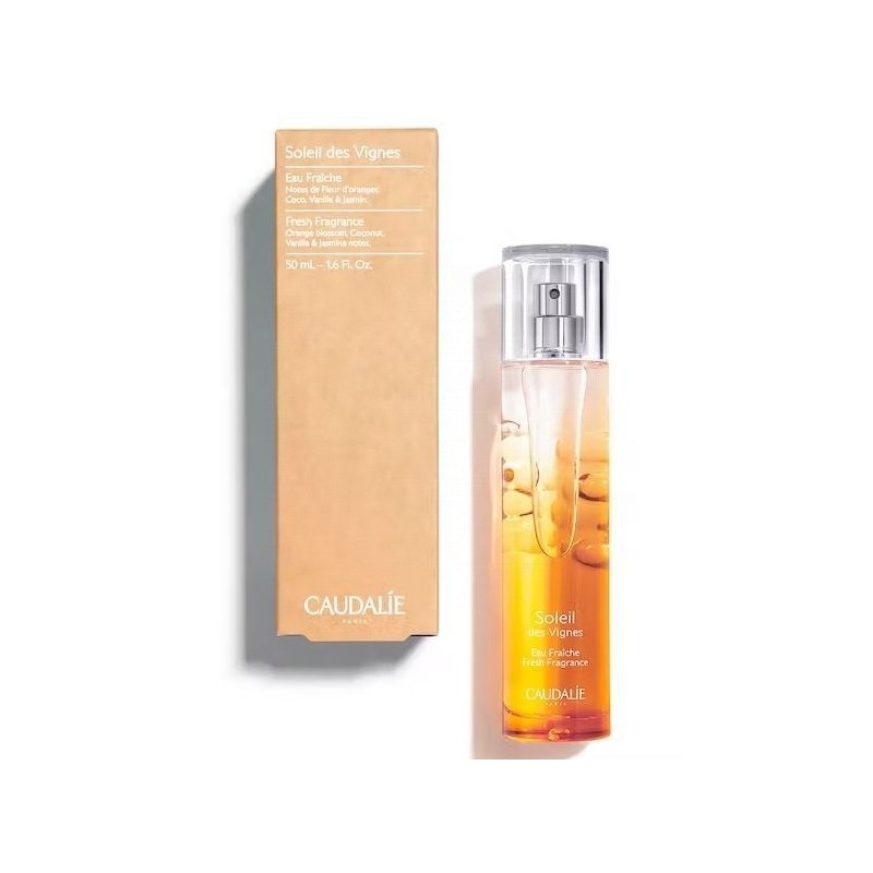TIPO DE PIEL : TODO TIPO DE PIELESNECESIDAD : PERFUMEINGREDIENTES CLAVE : AGUA DE AZAHAR, JAZMÍN, COCOTEXTURA : AGUAUSO : EN CUALQUIER MOMENTO DEL DÍA¿QUÉ ES?EL AGUA FRESCA SOLEIL DES VIGNES ES UN AGUA PERFUMADA PARTICULARMENTE CÁLIDA. SU SOLEADA FRAGANCIA REVELA NOTAS DE COCO, AZAHAR, JAZMÍN Y VAINILLA. ¡EL RECUERDO DEL VERANO DURANTE TODO EL AÑO!FÓRMULA:VEGANO94% DE INGREDIENTES DE ORIGEN NATURALSIN COLORANTES ARTIFICIALES¿LO SABÍAS?INSPIRADA POR MATHILDE THOMAS, CADA AGUA FRESCA CAUDALIE RECUERDA LA BELLEZA Y LA EMOCIÓN DE UN PASEO SENSORIAL POR LOS VIÑEDOS. LAS NOTAS DE SOLEIL DES VIGNES, INSPIRADAS EN UNA ESCAPADA ESTIVAL A CAP FERRET, HAN SIDO CREADAS ESPECIALMENTE PARA CAUDALIE POR LA MAESTRA PERFUMISTA OLIVIA GIACOBETTI.