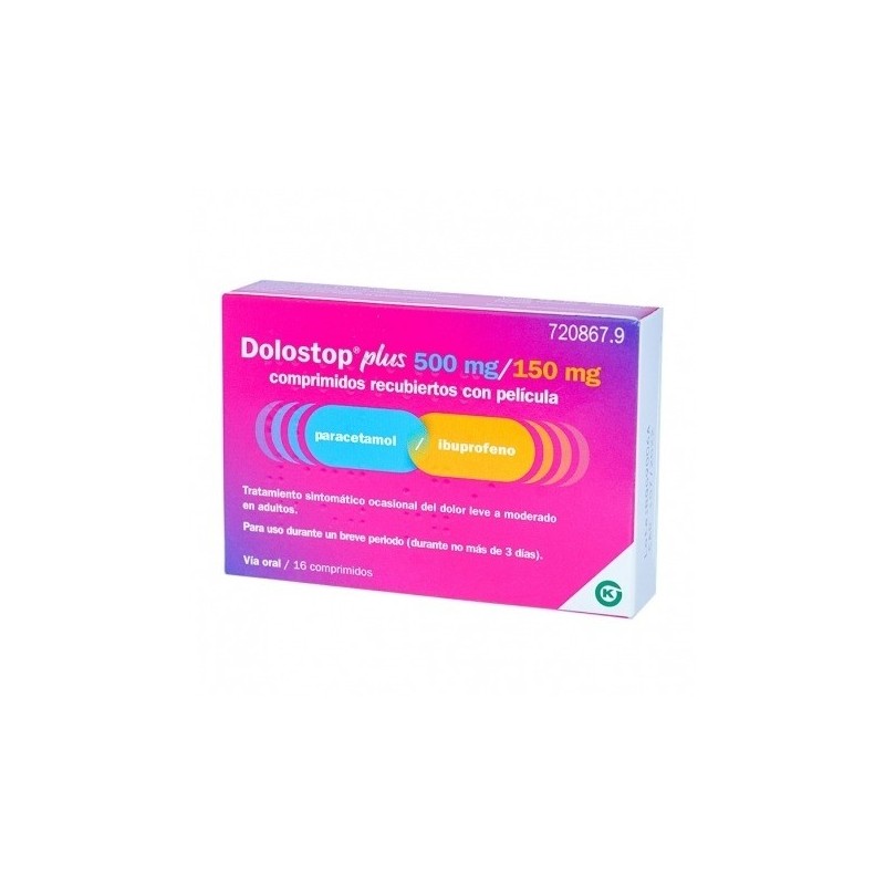 DOLOSTOP PLUS 500 MG/150 MG COMPRIMIDOS RECUBIERTOS CON PELICULA, 16 comprimidos