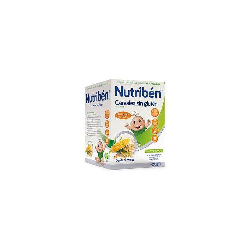 LA PAPILLA NUTRIBÉN CEREALES SIN GLUTEN ESTÁ COMPUESTA DE MAÍZ Y ARROZ. ESTOS CEREALES SON UNA IMPORTANTE FUENTE DE ENERGÍA Y POR ESO SON UN ALIMENTO BÁSICO EN LA DIETA INFANTIL. ADEMÁS ESTÁ ENRIQUECIDA CON 11 VITAMINAS Y CALCIO. SU AGRADABLE SABOR Y TEXTURA LE ENCANTARÁ A TU BEBÉ. SU FÓRMULA ES:- LIBRE DE TRANSGÉNICOS- SIN AZÚCARES AÑADIDOS Y SIN TRAZAS DE LECHE.