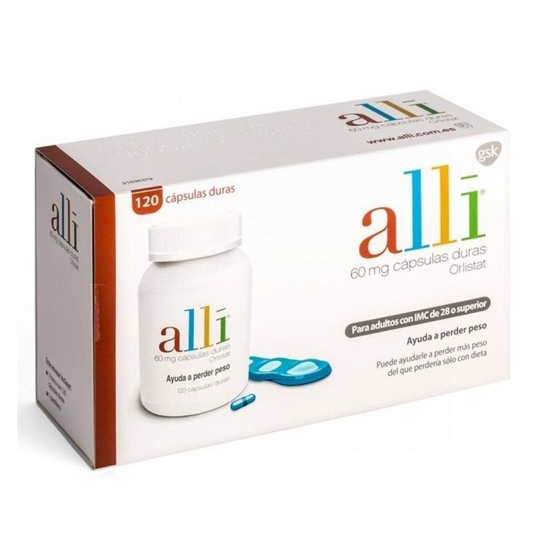 Alli 60mg 120 cápsulas está indicado para la pérdida de peso en adultos con sobrepeso (índice de masa corporal, IMC, ≥28 kg/m2 ) y debe tomarse en combinación con una dieta ligeramente hipocalórica y baja en grasa.