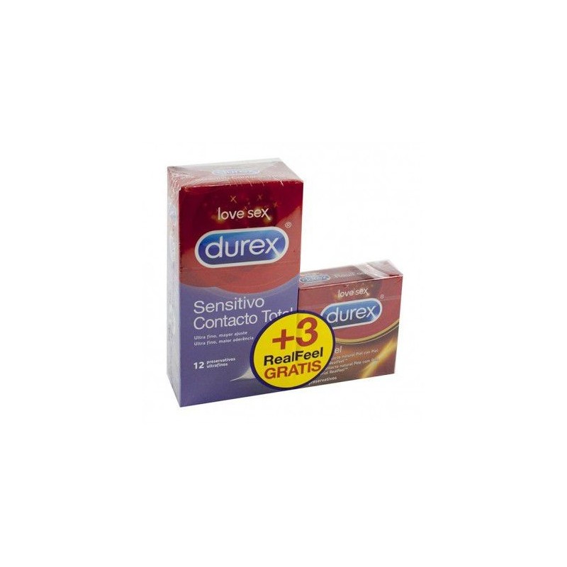 Durex Sensitivo Contacto Total+ Durex Real Feel12uds + 3uds