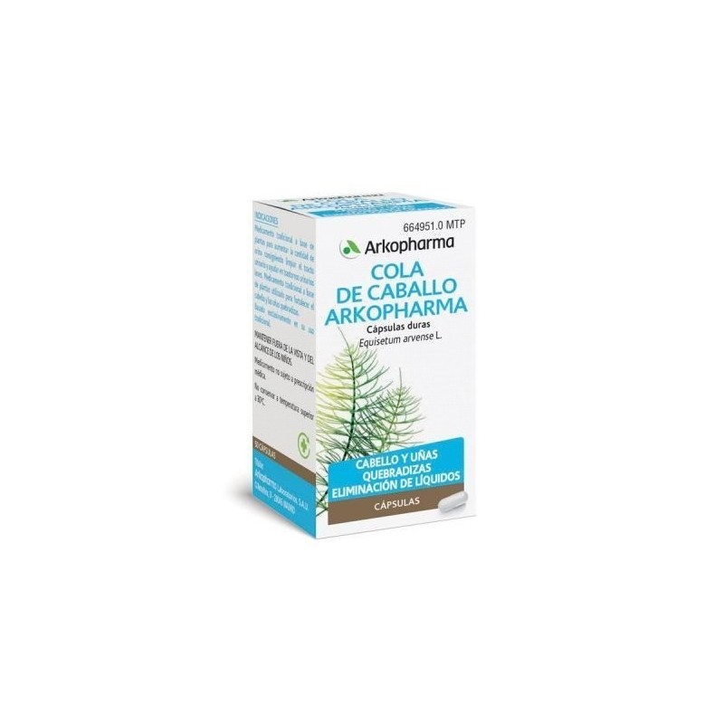 Producto elaborado a base de la planta tradicional cola de caballo. Ayuda a revitalizar la hebra capilar y las uñas. Además, contribuye a eliminar los líquidos. Contiene 50 cápsulas.