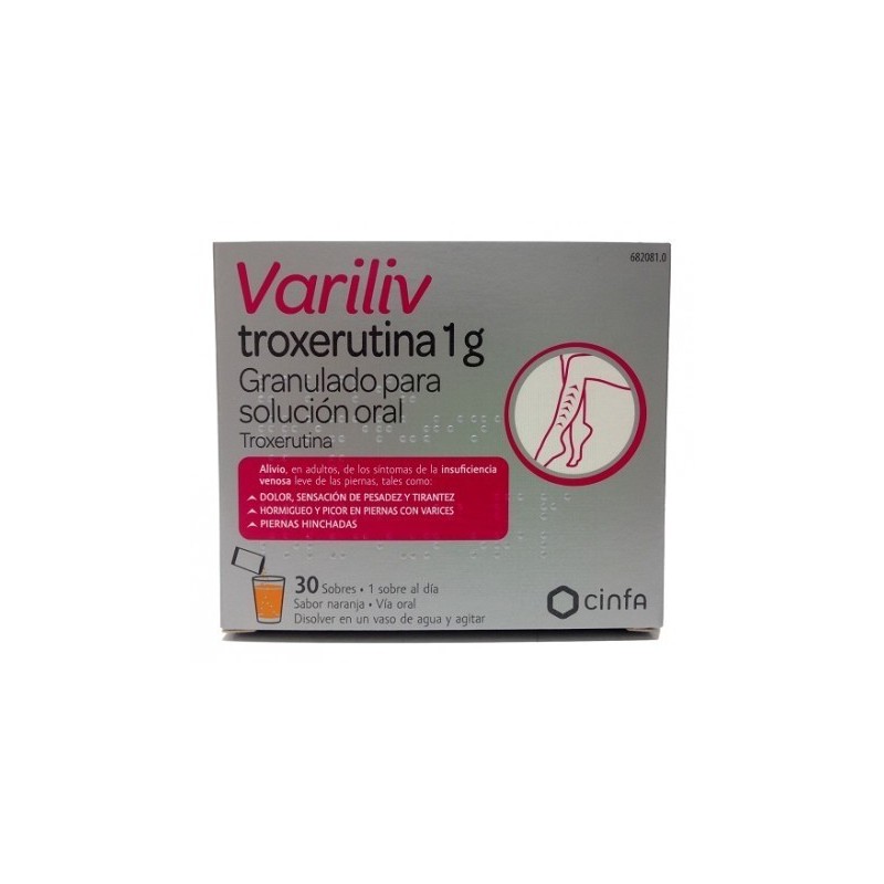 Variliv Troxerutina 1 g 30 Sobres granulado Solución Oral para el alivio de los síntomas de la insuficiencia venosa leve de las piernas.